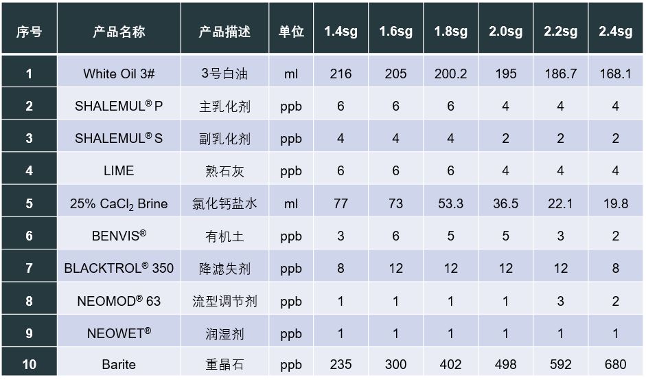 SHARK技术团队可根据实际井底温度等井下条件提供定制化的配方和解决方案,在实际应用中,SHALEDRIL®油基体系的油水比最低至60:40,最高泥浆密度超过2.3。