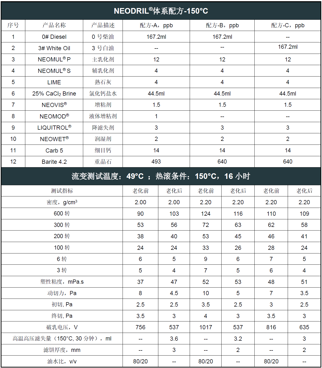 ¬ 该配方适用于大位移井、超长水平井钻井,在更高温度条件下,需要通过实验进行配方确认。